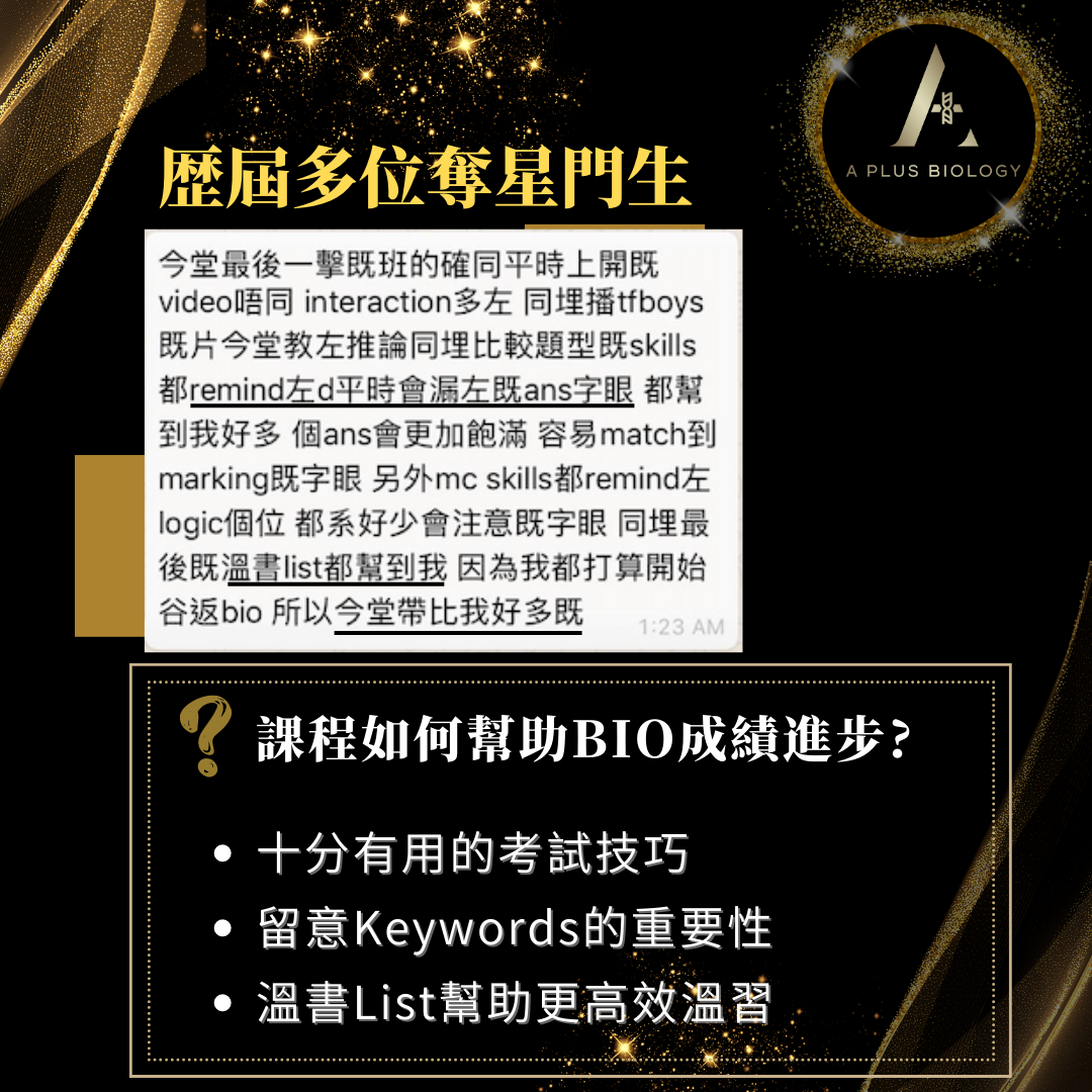 A Plus Bio學生進步實錄及好評,為所有DSE考生提供最有效的生物科應試技巧及bio答題方式。仲諗緊去邊補Bio或者Bio補習社邊個好? 大家都推薦A Plus Bio!
